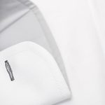 Etwas gröber in der Struktur, angenehm in der Haptik, reinweiß und dezent glänzend.
